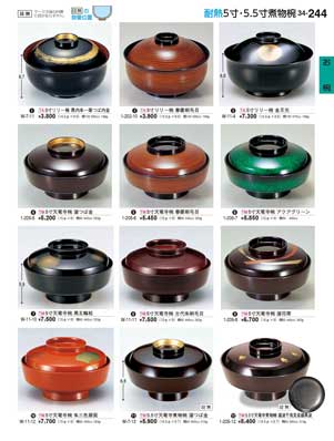 244ページ 耐熱5寸・5.5寸煮物椀Heat-resistant Lidded Bowls |