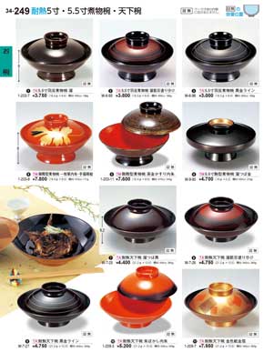 249ページ 耐熱5寸・5.5寸煮物椀・天下椀Heat-resistant Lidded Bowls |