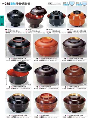 255ページ 耐熱丼椀・煮物椀Heat-resistant Lidded Bowls |