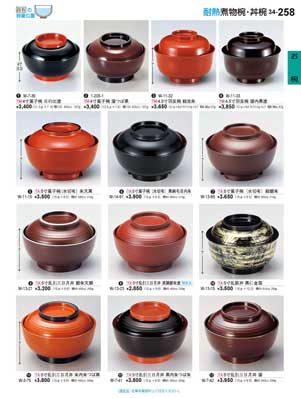 258ページ 耐熱煮物椀・丼椀Heat-resistant Lidded Bowls |