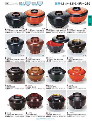 260ページ 耐熱4.5寸から5.5寸丼椀Heat-resistant Lidded Bowls |