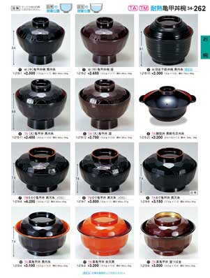 262ページ 耐熱亀甲丼椀Heat-resistant Lidded Bowls |