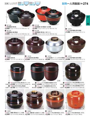 274ページ 耐熱一人用飯器Heat-resistant Rice Bowls for One Person |