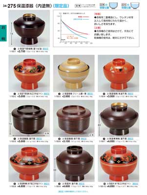 275ページ 保温漆器(内塗無)Lacquer Ware for Keeping Warm |