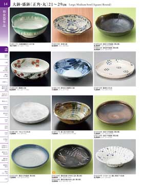 14ページ 大鉢・盛鉢(正角・丸)21から29cmLarge/Medium bowl(Square/Round) |