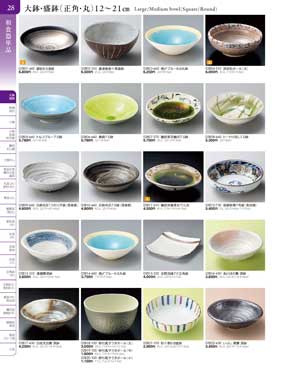 20ページ 大鉢・盛鉢(正角・丸)14から26cmLarge/Medium bowl(Square/Round) |