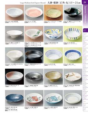 29ページ 大鉢・盛鉢(正角・丸)15から21cmLarge/Medium bowl(Square/Round) |