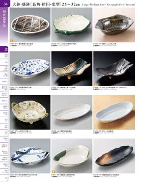 34ページ 大鉢・盛鉢(長角・楕円・変型)25から32cmLarge/Medium bowl(Rectangle/Oval/Variant) |