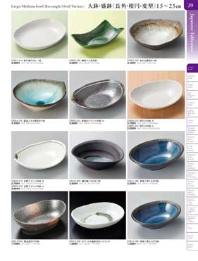 39ページ 大鉢・盛鉢(長角・楕円・変型)15から25cmLarge/Medium bowl(Rectangle/Oval/Variant) |