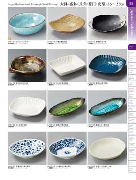 43ページ 大鉢・盛鉢(長角・楕円・変型)16から28cmLarge/Medium bowl(Rectangle/Oval/Variant) |