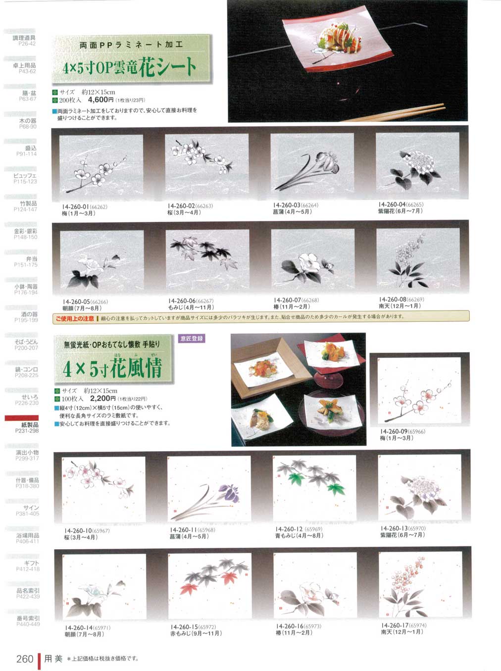 無蛍光紙OPおもてなし懐敷手貼り 4x5寸花風情 南天 100枚