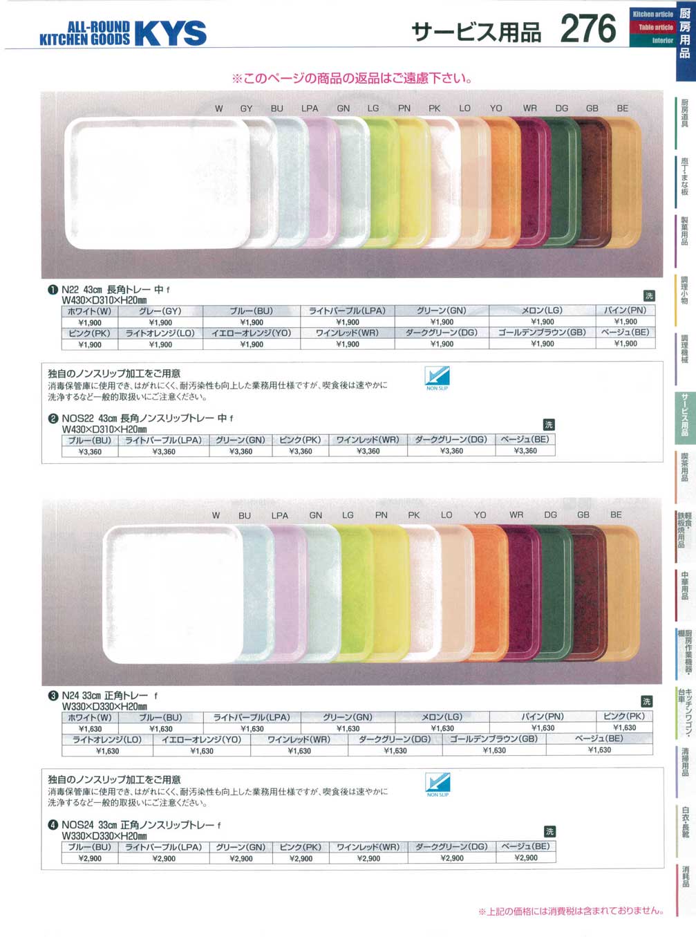 (17-0499-0802)FMMT0403NOS24LPA 33cm正角ノンスリップトレー ライトパープル(110)