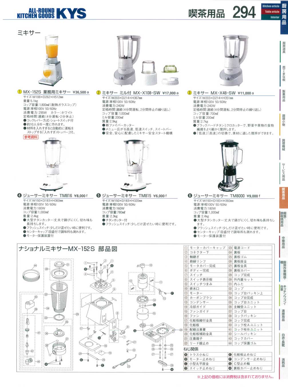 業務用ミキサー MX−152SP−W パナソニック