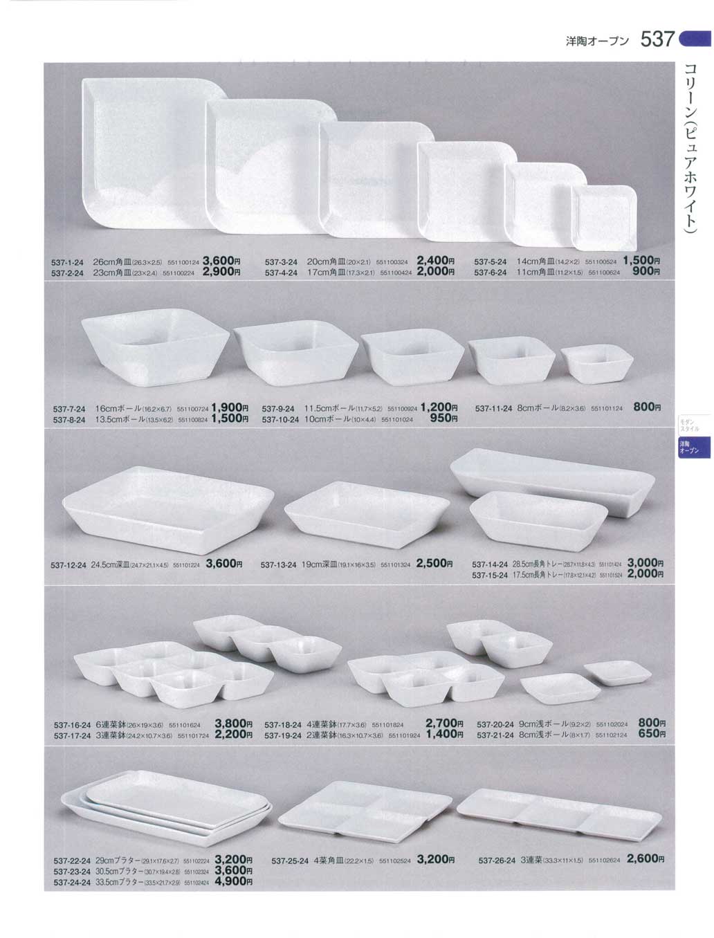 コリーン(ピュアホワイト)17.5cm長角トレー(商品番号537-15-24)