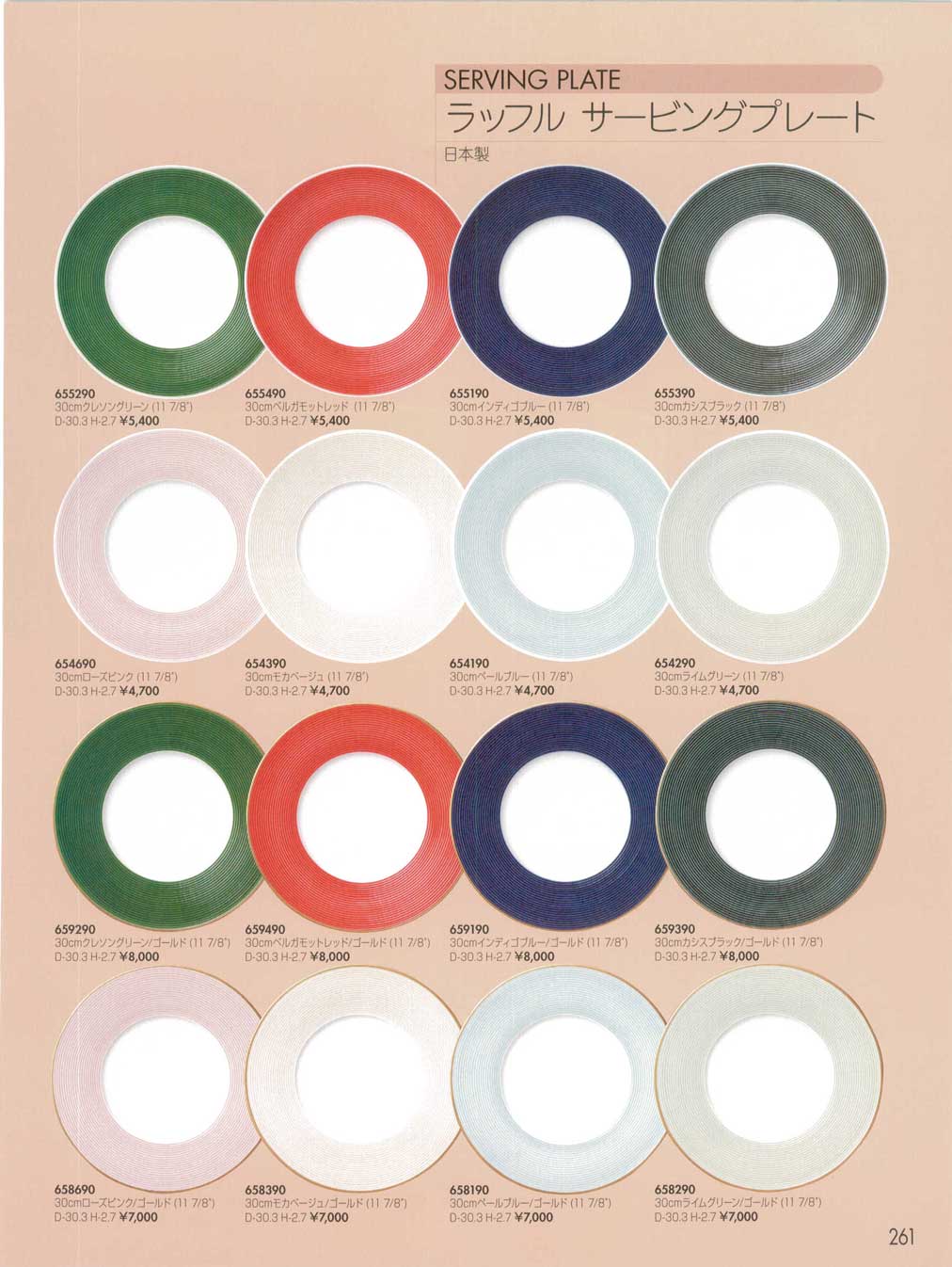 ラッフル30cmサービングプレート クレソングリーン/ゴールド(商品番号659290)