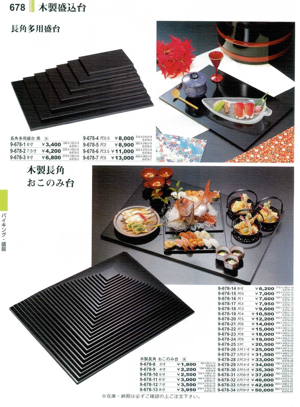 木)7.5寸長角多用盛台 黒(商品番号9-678-2)