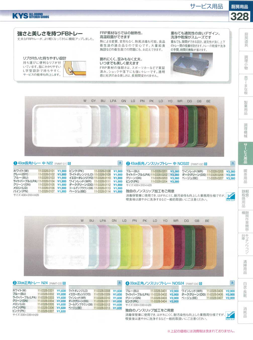 (17-0499-0803)FMMT0404NOS24GN 33cm正角ノンスリップトレー グリーン(110)