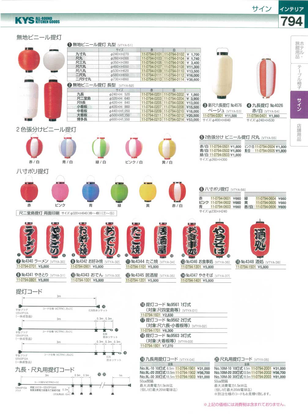 (17-1302-1801)VTYX0401提灯コード No.9L-10 (10灯式) (九長用・50cm間隔)(90)