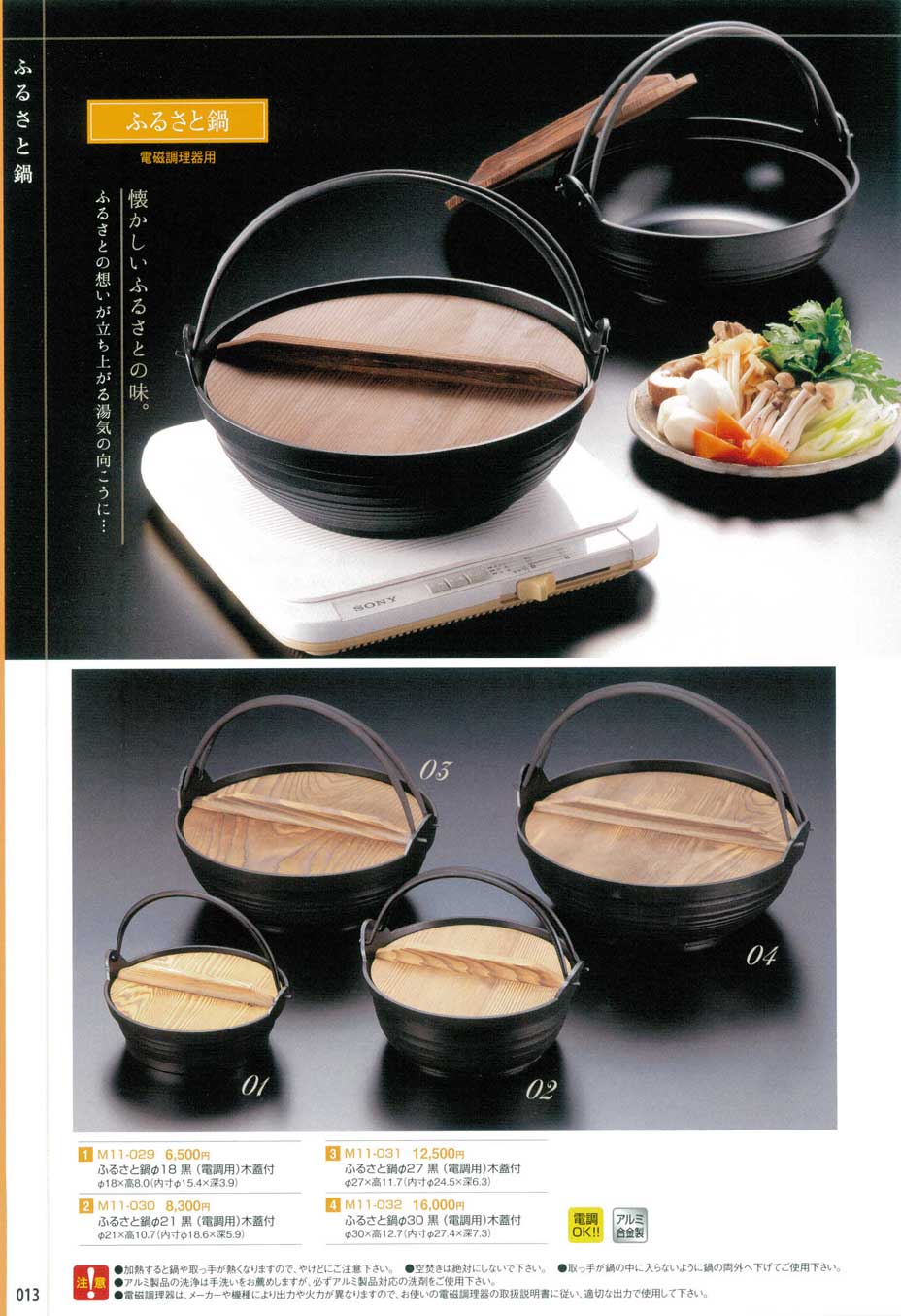 ふるさと鍋φ27 黒(電調用)木蓋付(商品番号M11-031)
