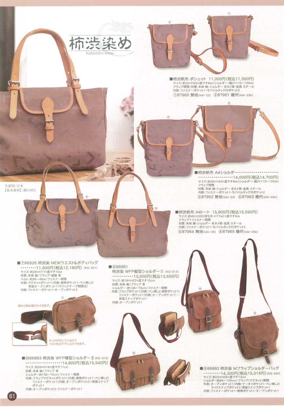 柿渋帆布 A4ショルダー 無地(上106)