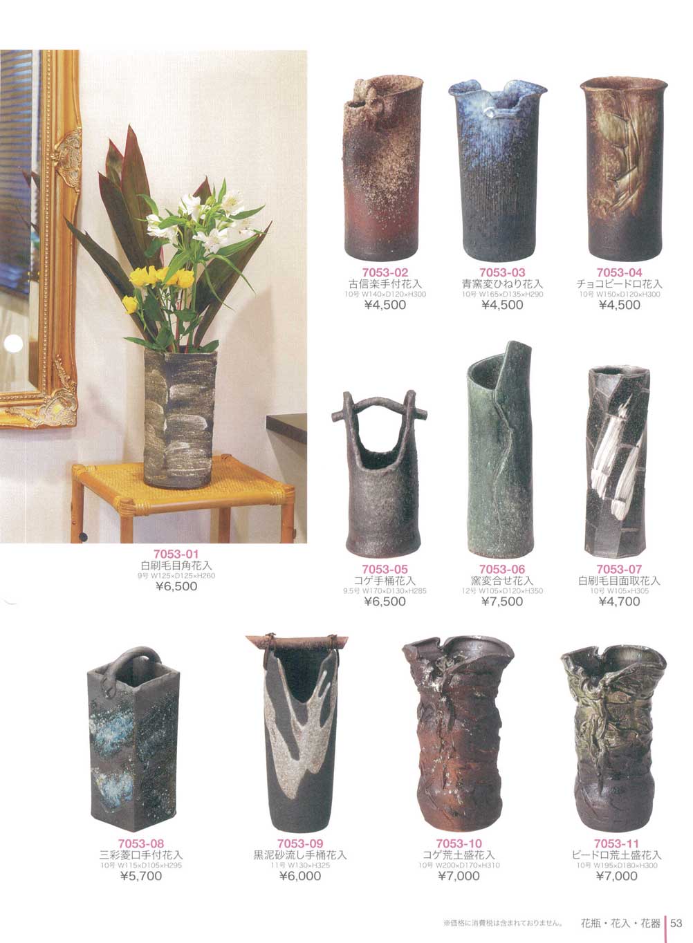 白刷毛目面取花入