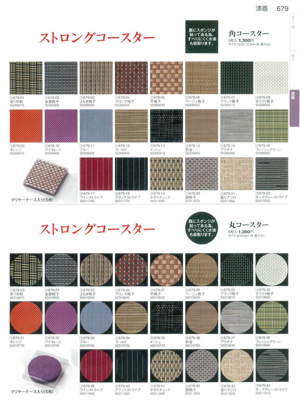 ストロングコースター丸コースター 5枚入変りアジロ 材質:PVC