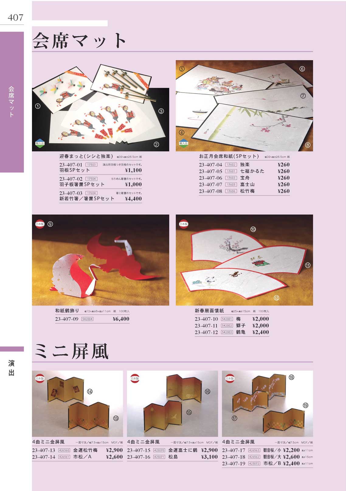 お正月会席和紙5Pセット(独楽)