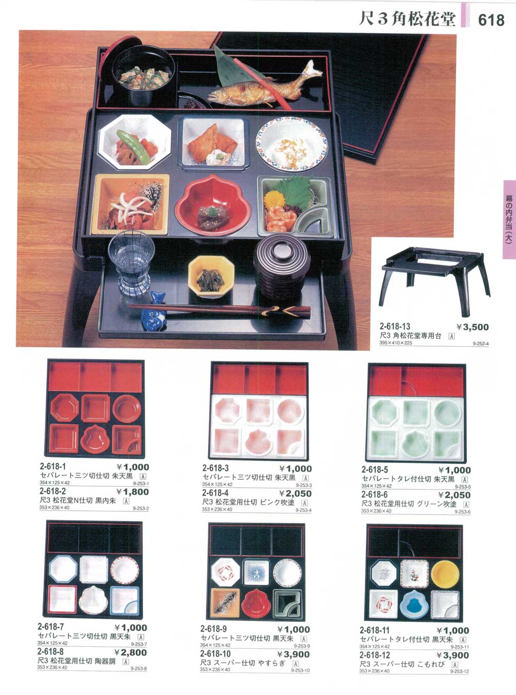 尺3松花堂N仕切 黒内朱