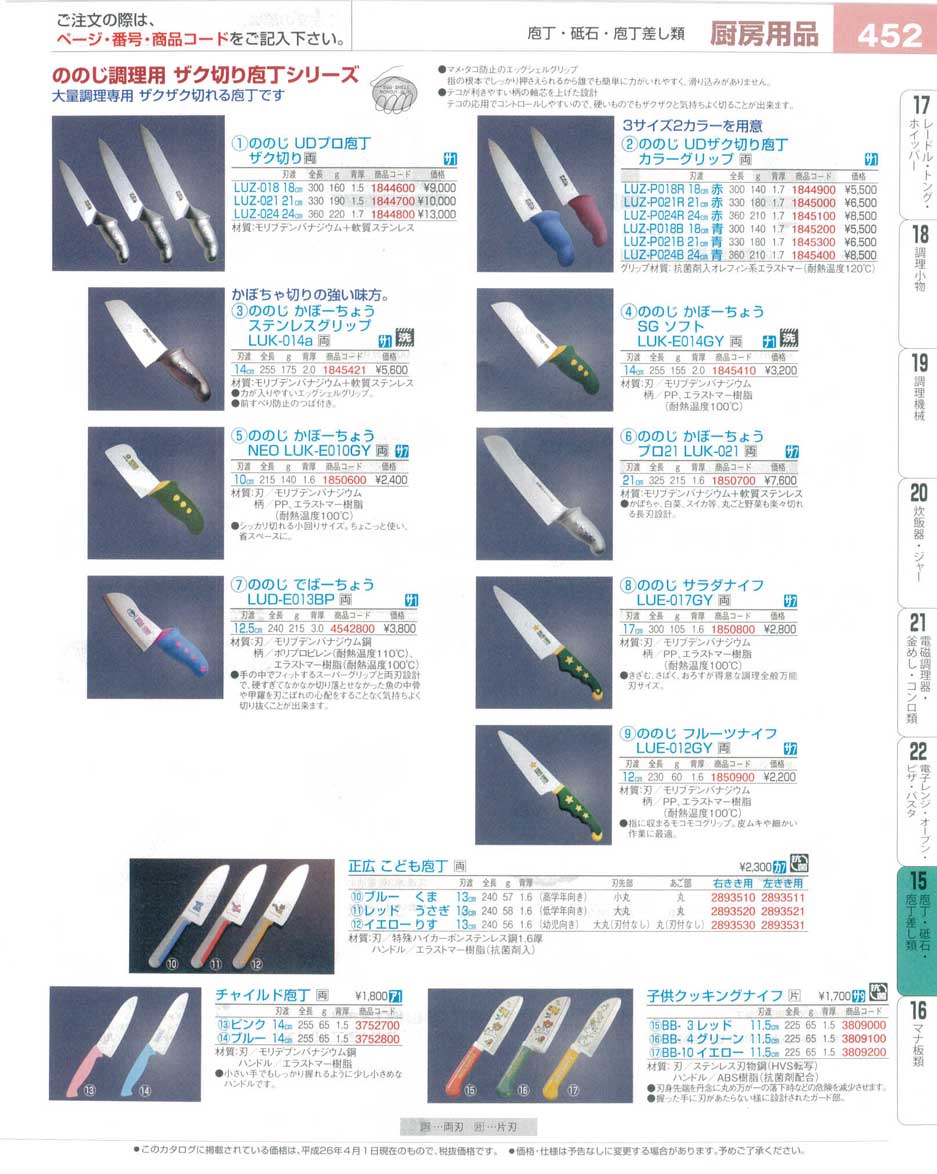 ののじ UDプロ庖丁 ザク切り LUZ-018 18cm(130)