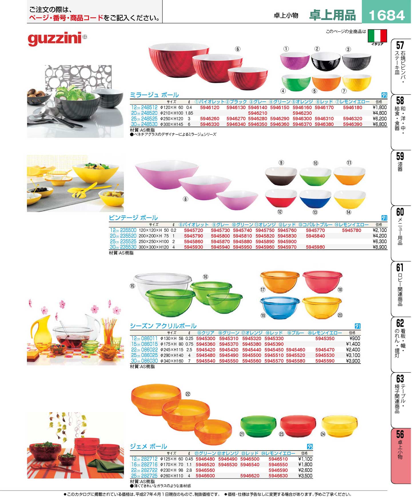 古いカタログの商品になりますので売切・廃盤などでご用意できない場合があります。