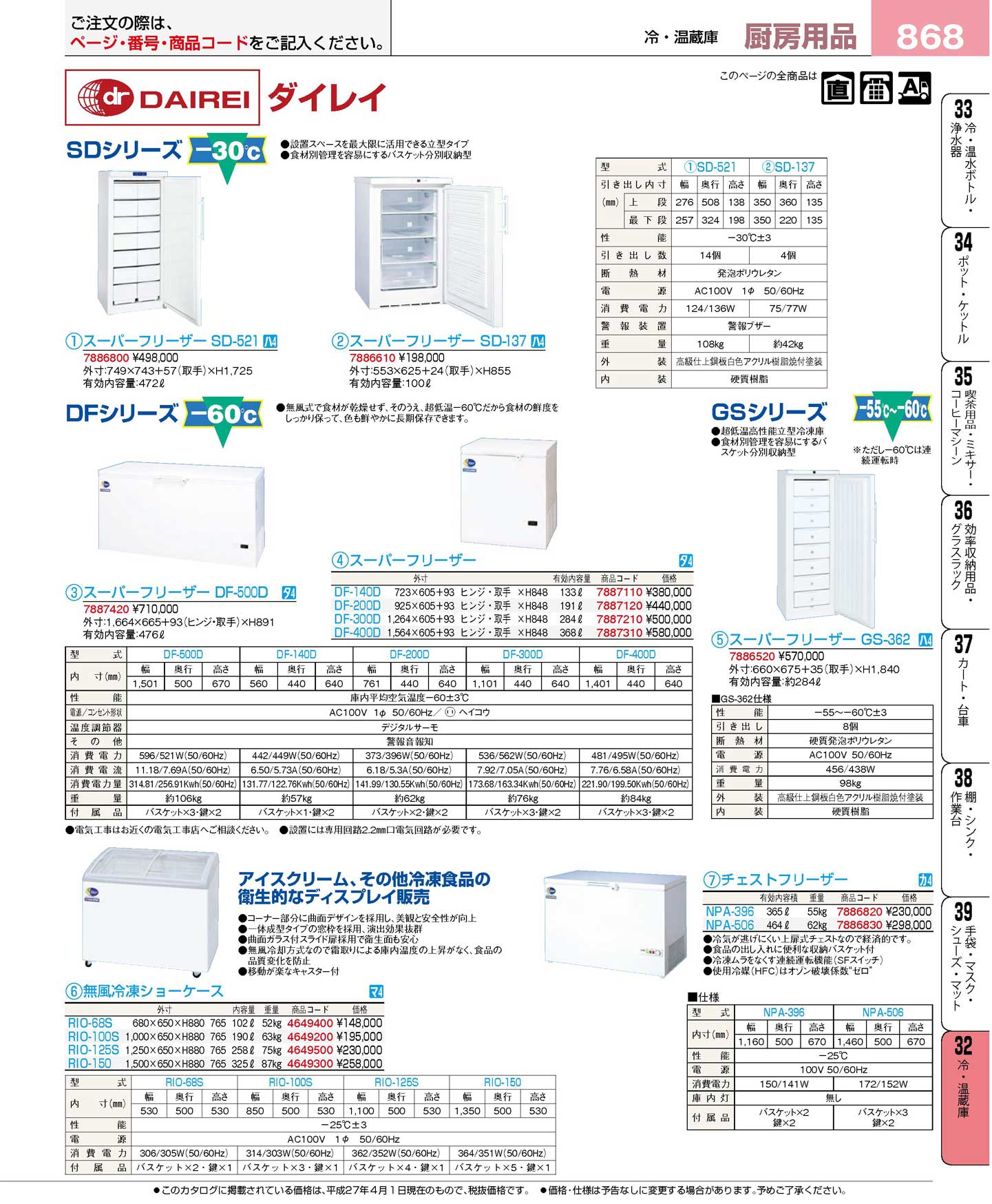 ダイレイ スーパーフリーザー(冷凍庫)SD-137(144)