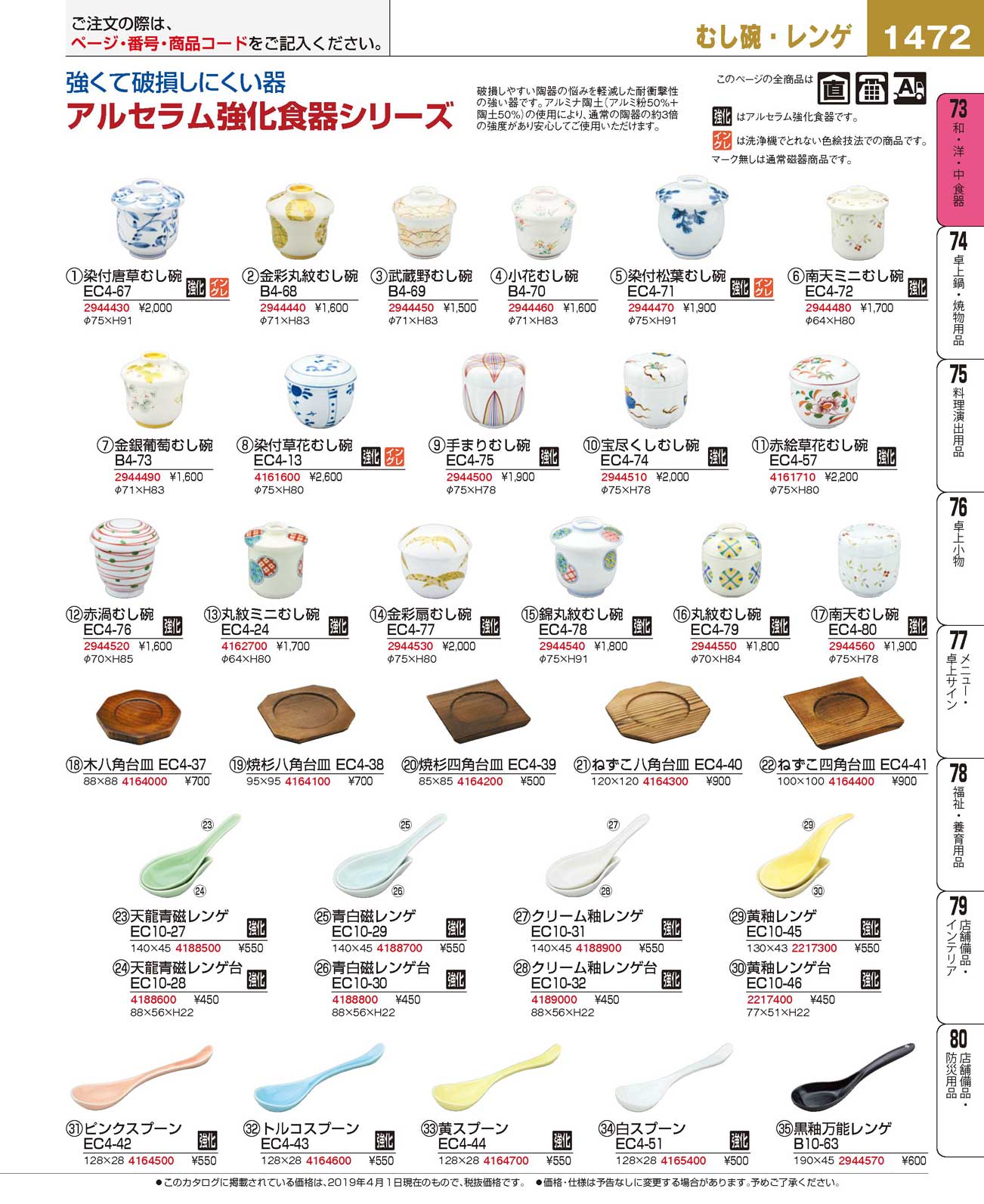アルセラム強化食器 南天むし碗 EC4-80(90)