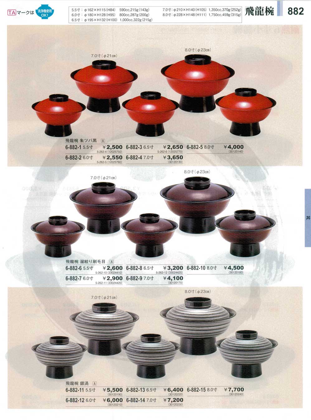 7.0寸飛龍椀 朱ツバ黒