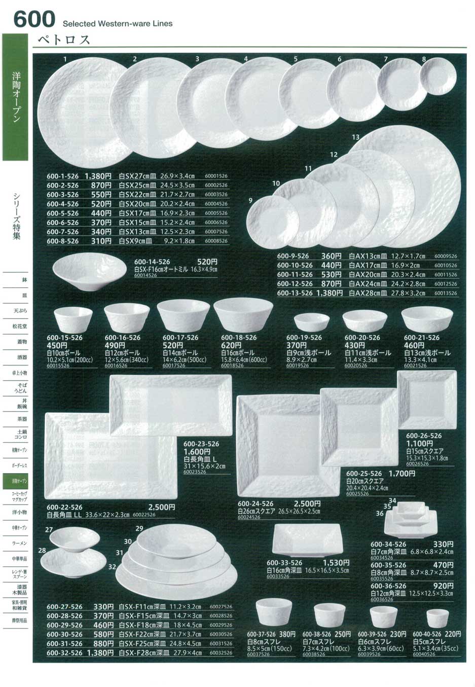 ペトロス白SX13cm皿(単価改定)