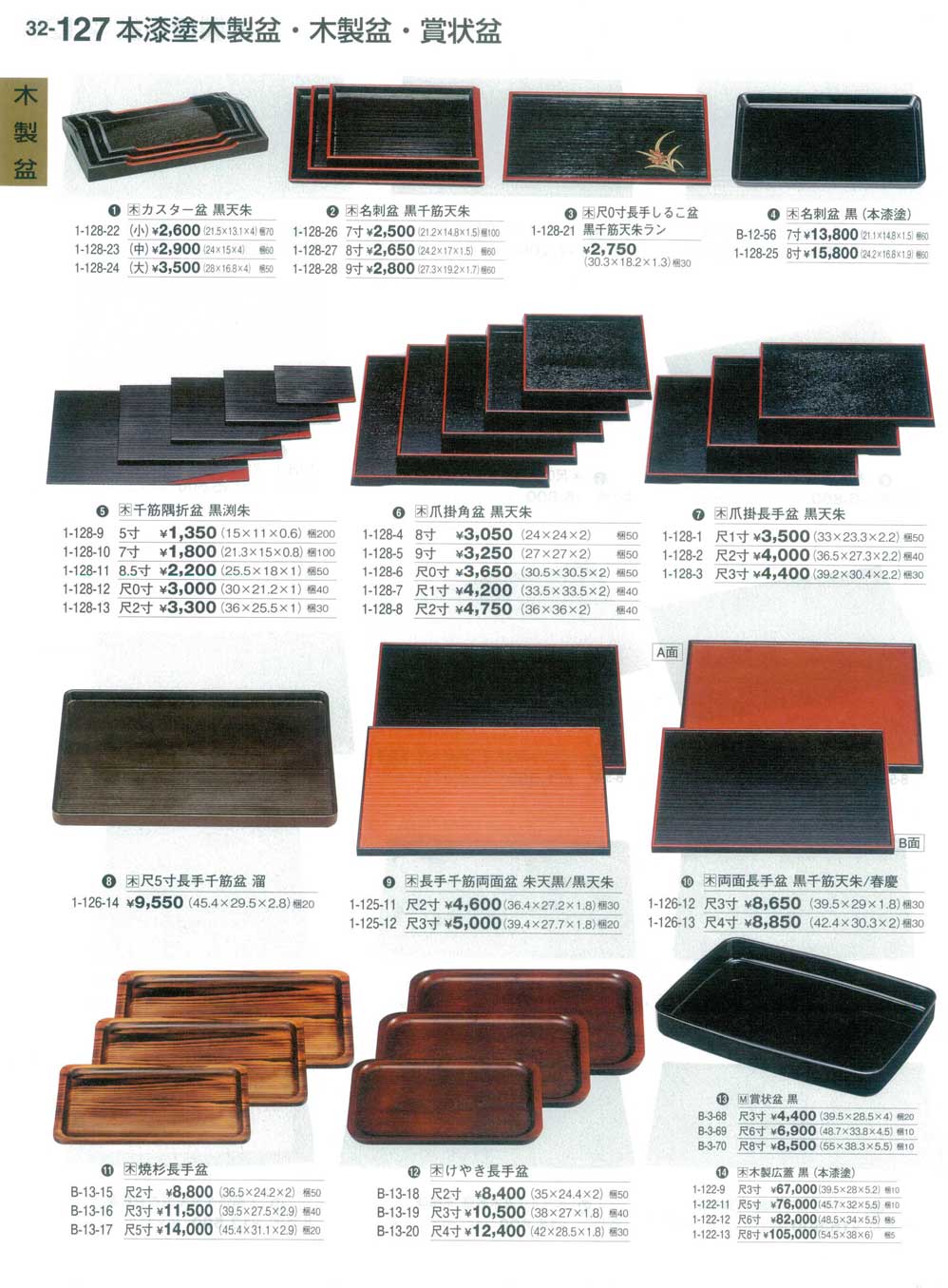 長手千筋両面盆 朱天黒/黒天朱 尺2寸