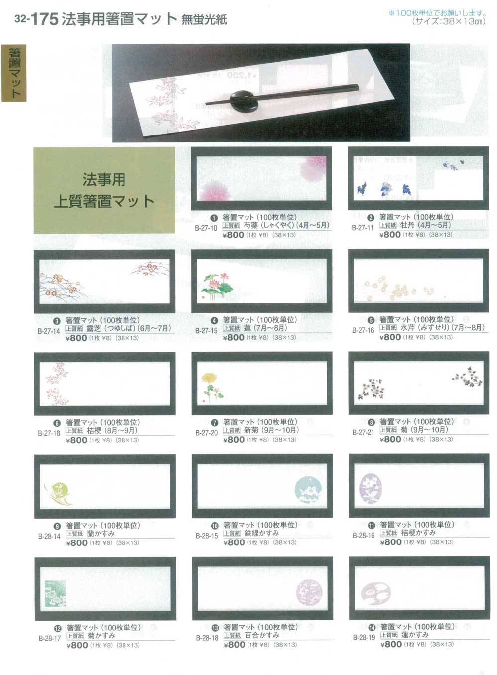 上質紙38×13 法事用上質箸置マット・100枚単位でお願いします。