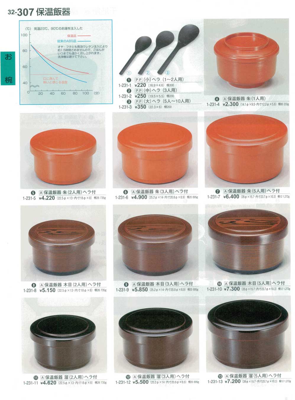 保温飯器 木目(3人用)ヘラ付(商品番号32-307-9)