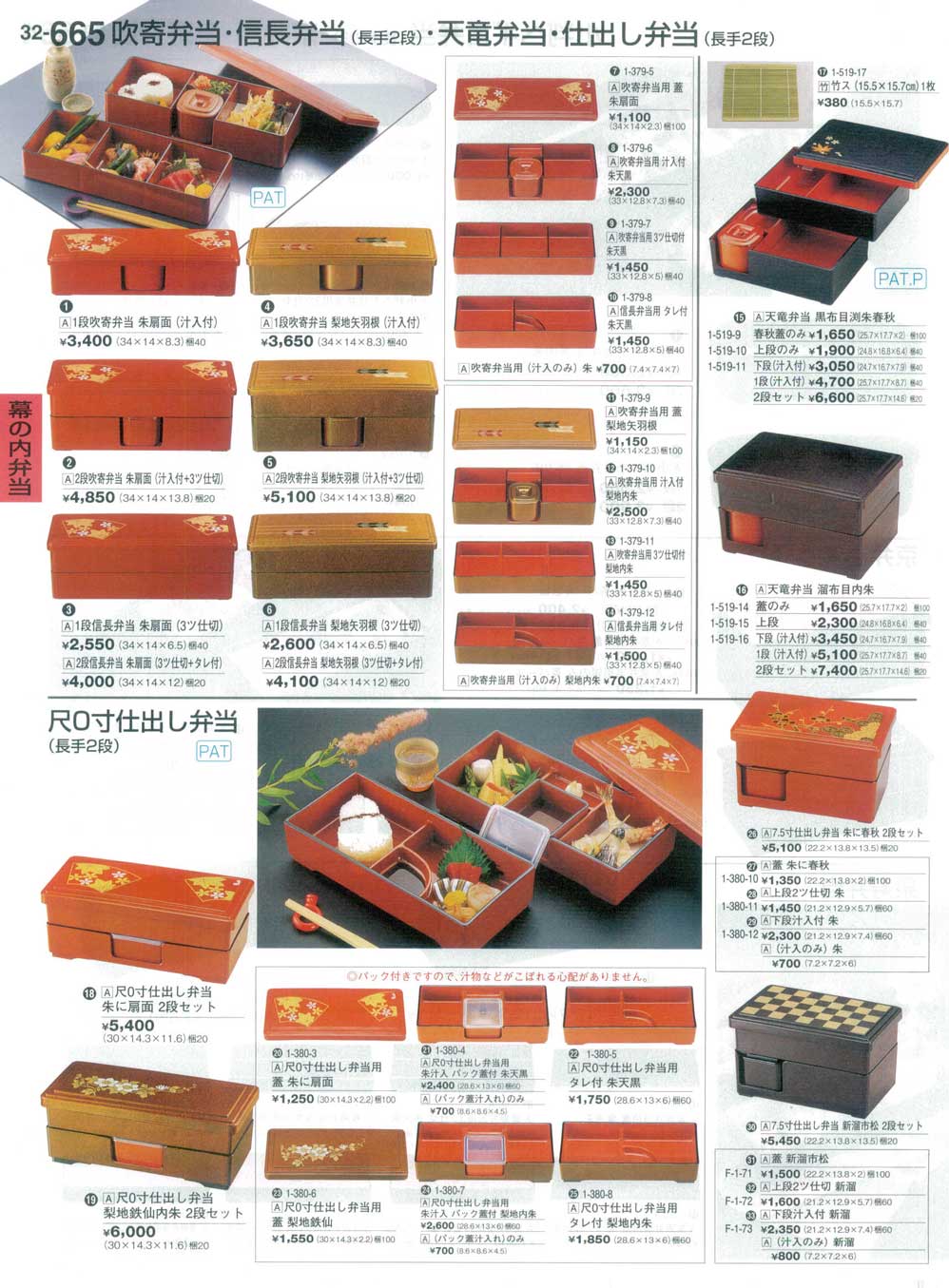 尺0寸仕出し弁当 身朱汁入 パック蓋付 梨地内朱