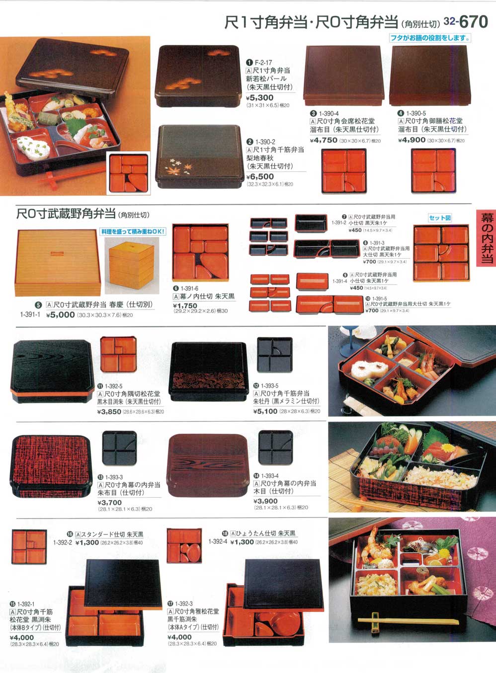 尺0寸武蔵野弁当用 大仕切 黒天朱1ケ