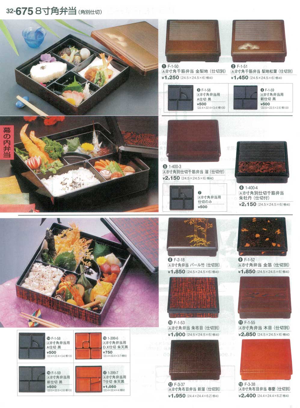 8寸角布目弁当 新溜(仕切別)
