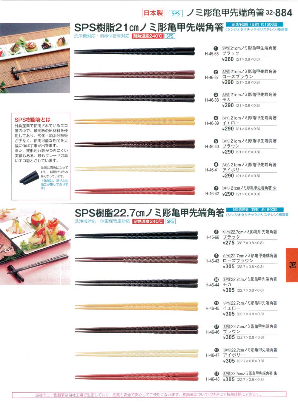 SPS21×0.8×0.8 洗 耐洗浄回数(目安)約1500回 洗浄機対応・消毒保管庫対応耐熱温度240℃/SPS〔シンジオタクチックポリスチレン〕樹脂箸 当社のエコ樹脂箸は自社工場で生産しており、品質も安全で安心してご使用になれます。樹脂箸については特注にて抗菌仕様にできます。