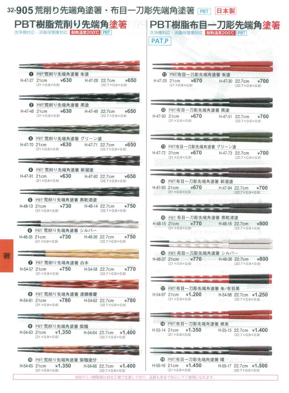 PBT22.7×0.9×0.9 洗 洗浄機対応・消毒保管庫対応 耐熱温度200℃/PBT 当社のエコ樹脂箸は自社工場で生産しており、品質も安全で安心してご使用になれます。