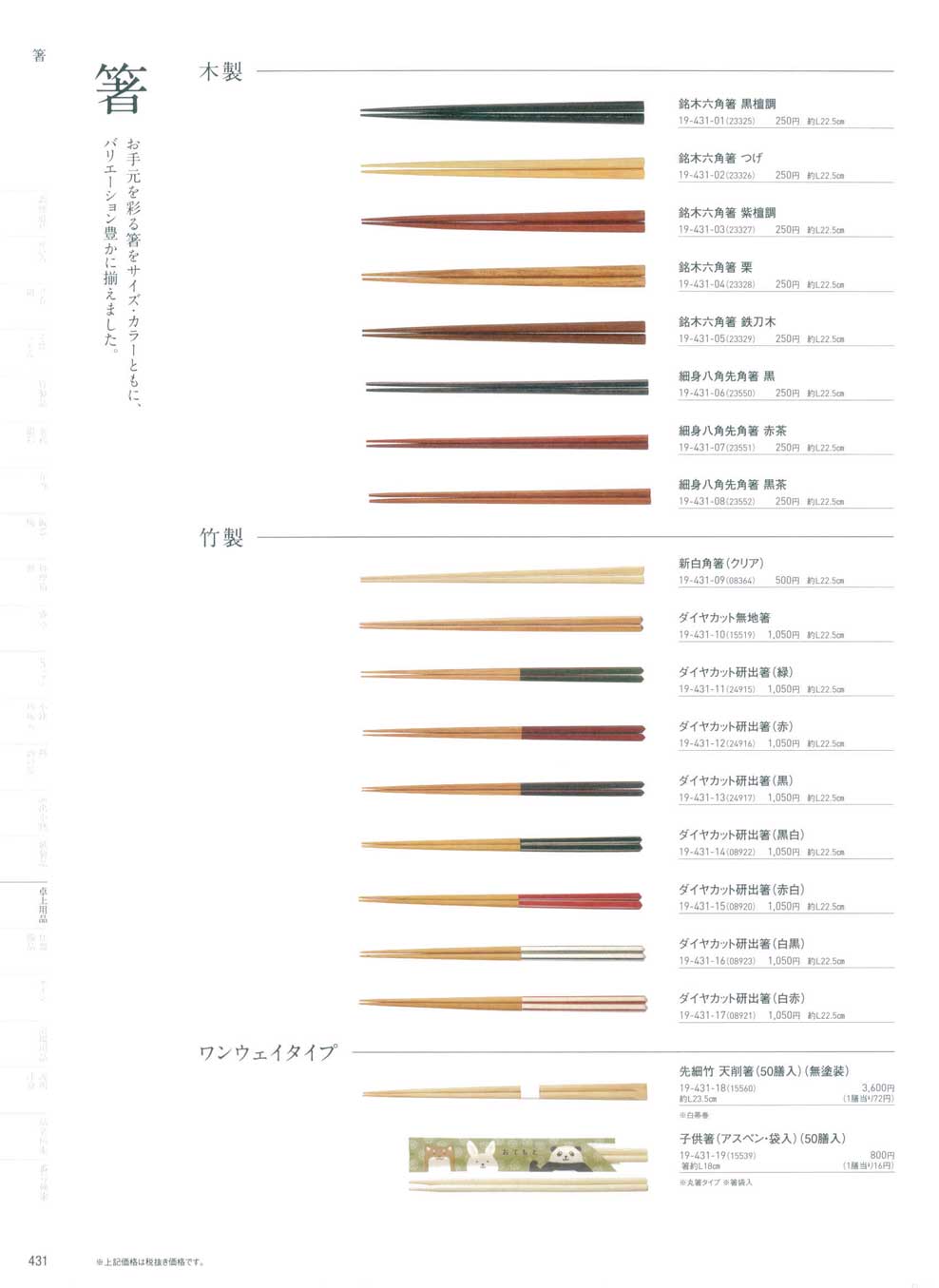 ダイヤカット無地箸(商品番号15519)