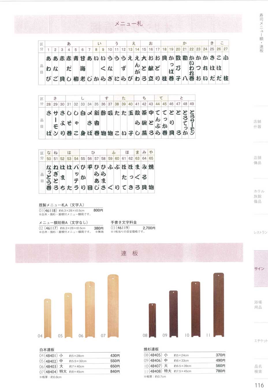 既製メニュー札 A(文字入)