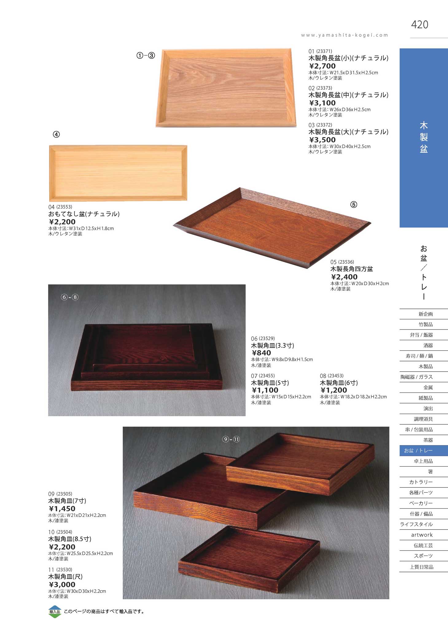 木製長角四方盆