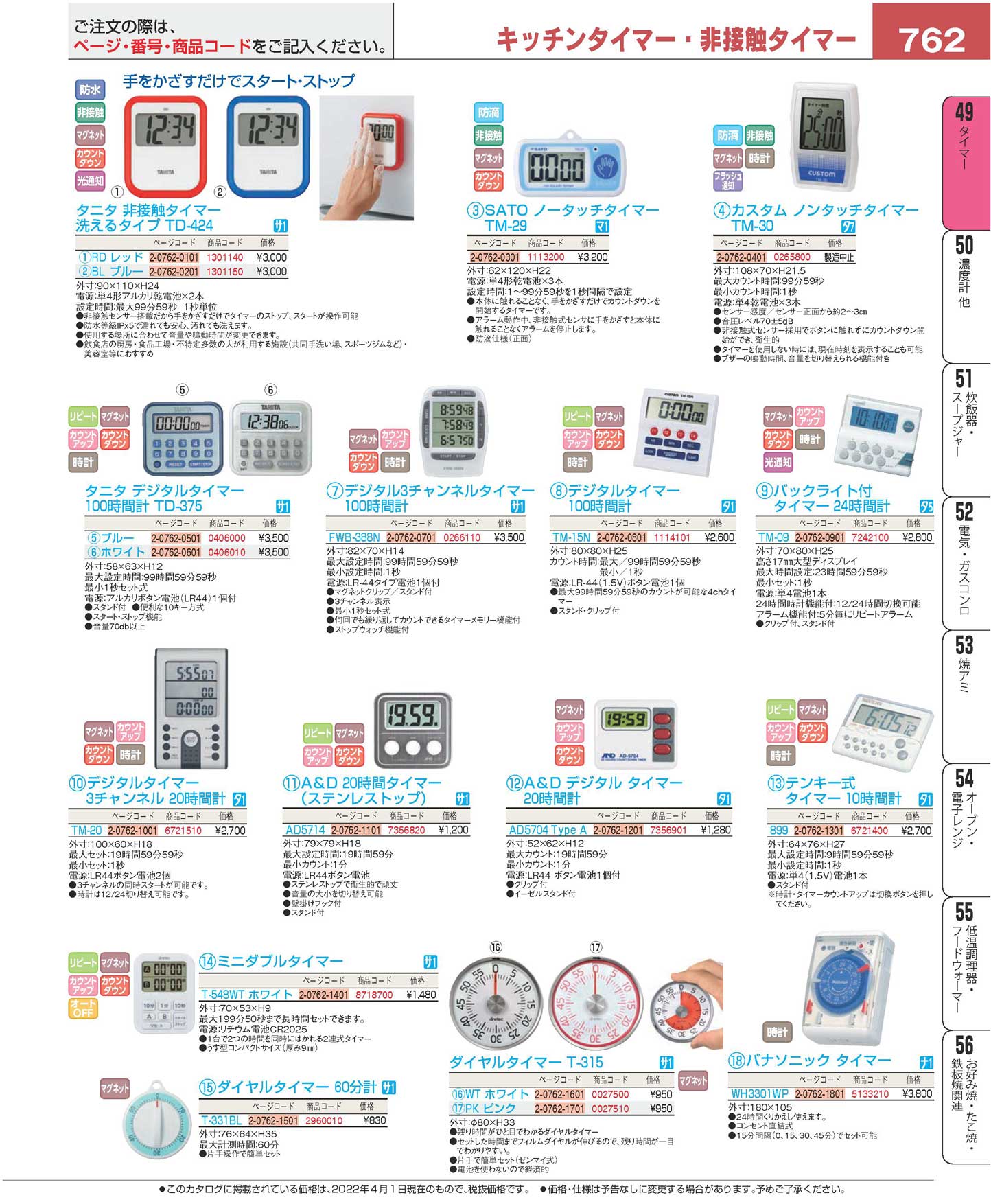 タニタ 非接触タイマー 洗えるタイプ TD-424 BL ブルー(120)