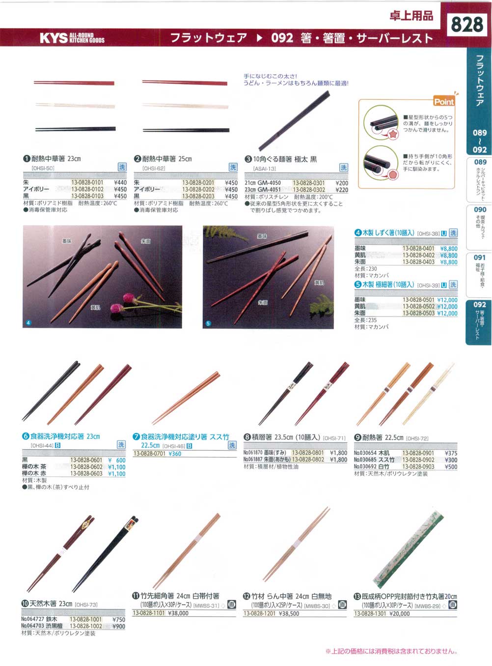 (17-0928-0801)OHSI4601食器洗浄機対応塗り箸 スス竹 約22.5cm 15394(100)