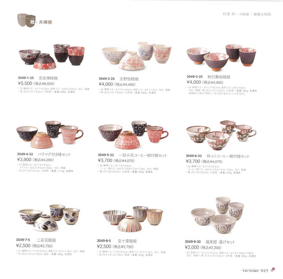 陶器 品:飯碗×2/11.8×6.2cm、湯呑×2/8.3×7.4cm 箱:25.5×21.3×10cm貼箱美濃焼