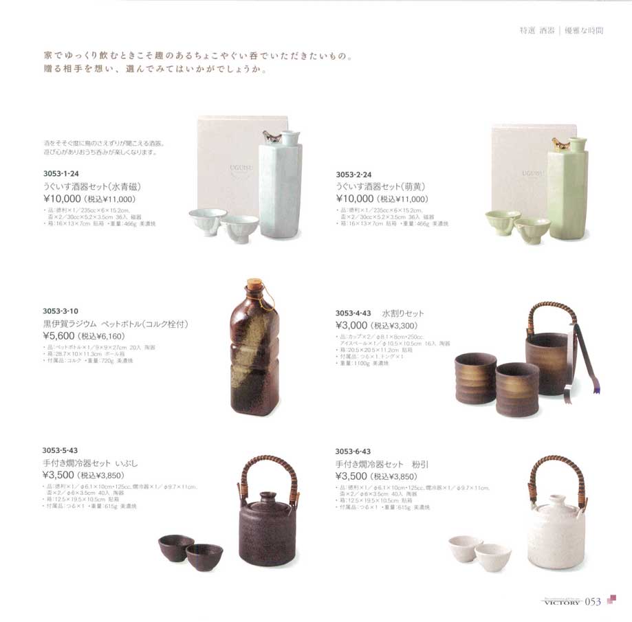 磁器 品:徳利×1/235cc×6×15.2cm、盃×2/30cc×5.2×3.5cm 箱:16×13×7cm貼箱美濃焼
