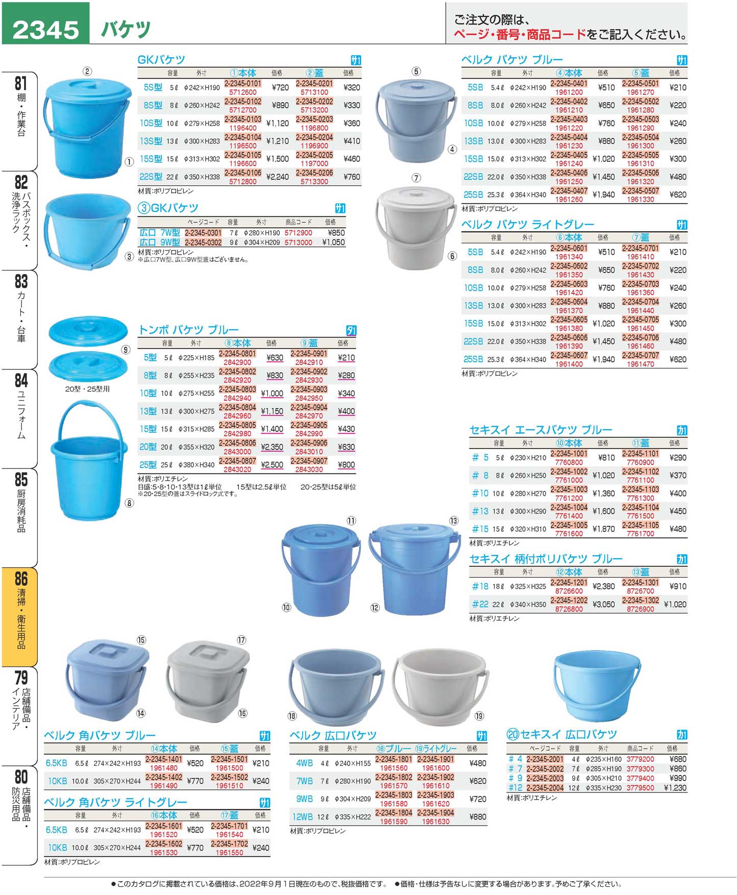 ベルク バケツ 22SB フタ ブルー(120)